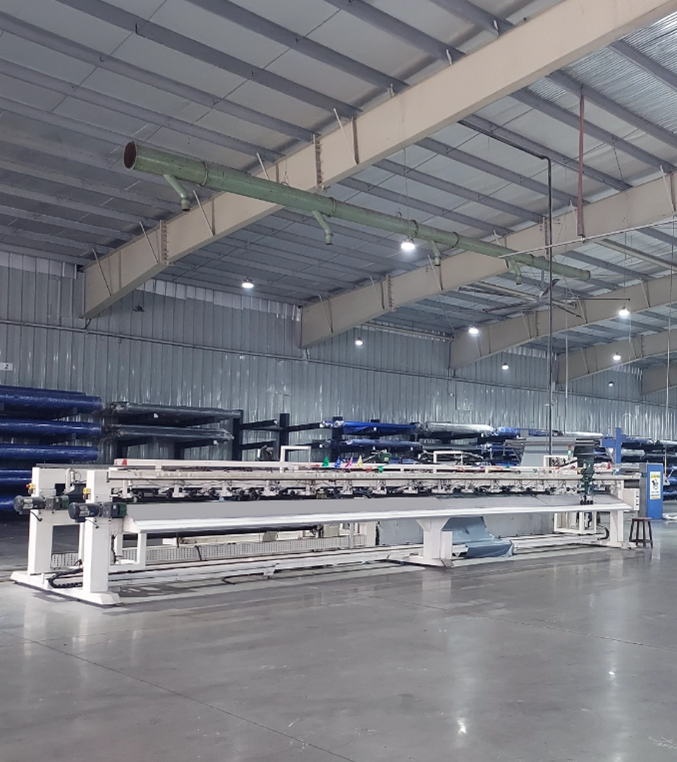SRF is equipped with a state-of-the-art fabrication facility for the fabrication of customisation tarpaulins & specialty articles in specially-designed US & European machines, setting the highest record in the fabrication of the largest single pond liner of 8,790 sq. mt.
